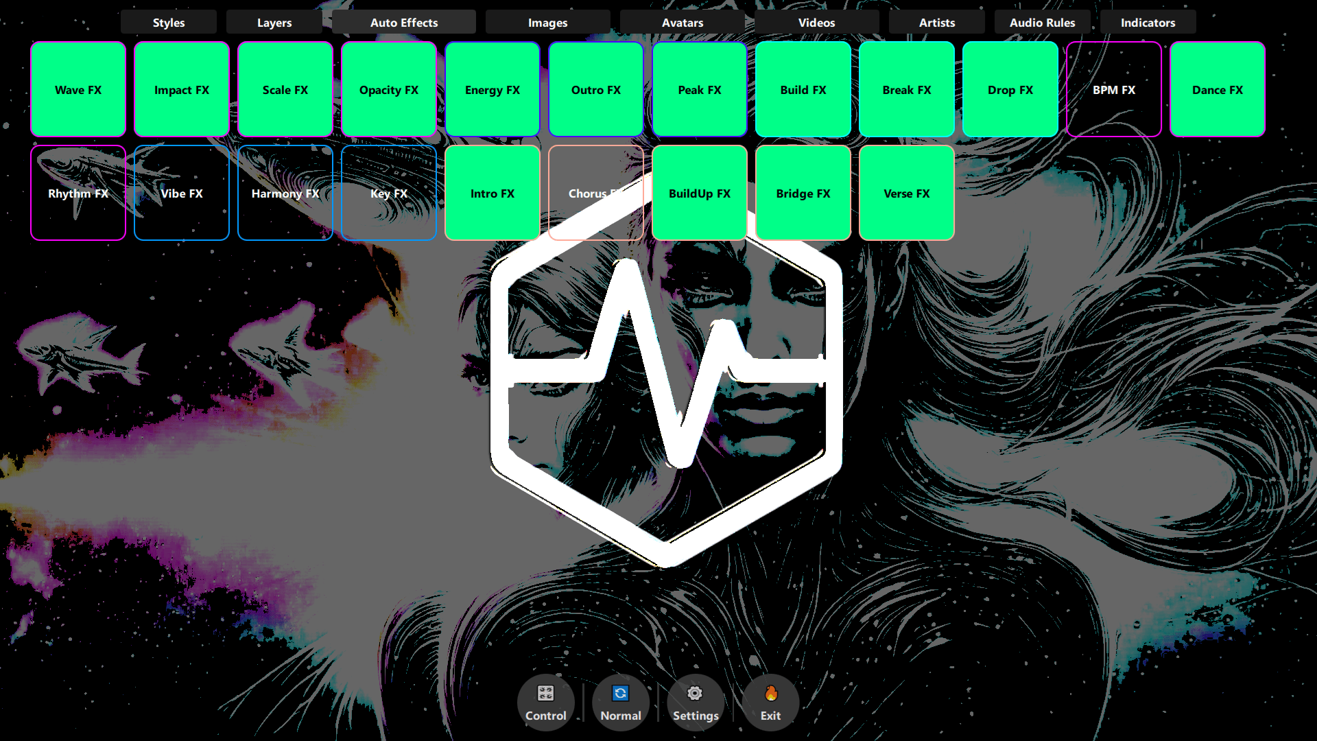 80+ configurable parameters for automated visual effects triggered by audio analysis, including beat detection, key changes, and musical moments.